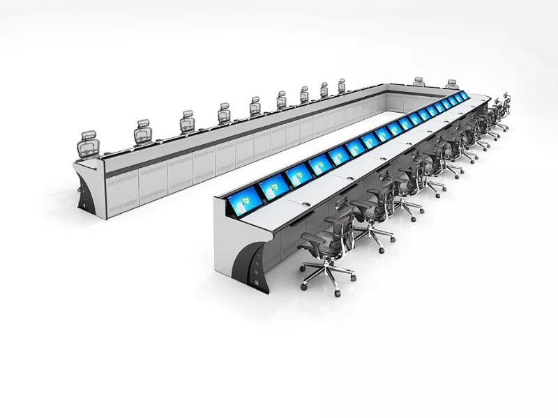 کنسول مانیتورینگ چند صندلی یک سیستم ایستگاه کاری یکپارچه است که دو یا چند اپراتور را به طور همزمان در خود جای می دهد. این یک پلت فرم متمرکز برای نصب مانیتورها، تجهیزات کنترل میزبانی، مدیریت کابل ها و حفظ راحتی ارگونومیک در طول شیفت های طولانی را فراهم می کند.
